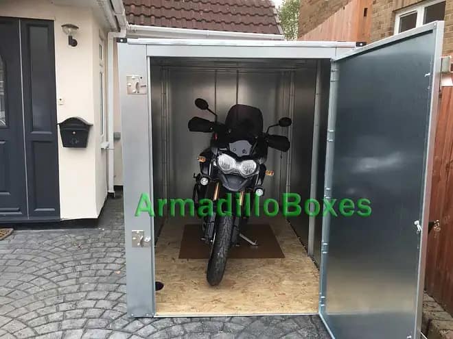 Secure Motorbike Sheds made from 1.2mm galvanised steel.