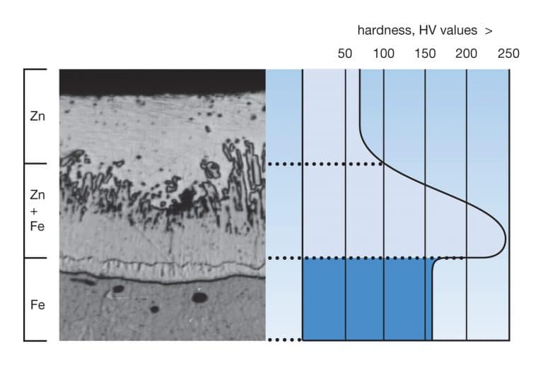 The unique nature of the galvanizing process – formation of a series of zinc-iron alloy layers – provides a tough and abrasion resistant coating.