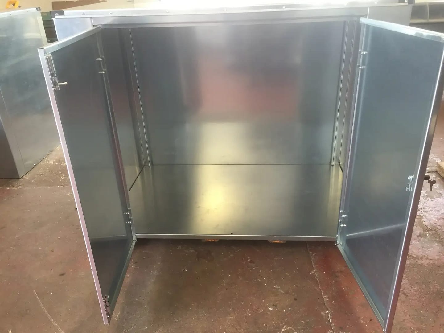 60 inch wide 37 inch deep and 48 inch high, with double opening doors