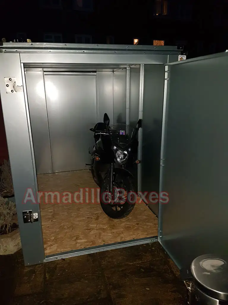Motorcycle secure sheds (Units) out of site out of mind out of reach.
