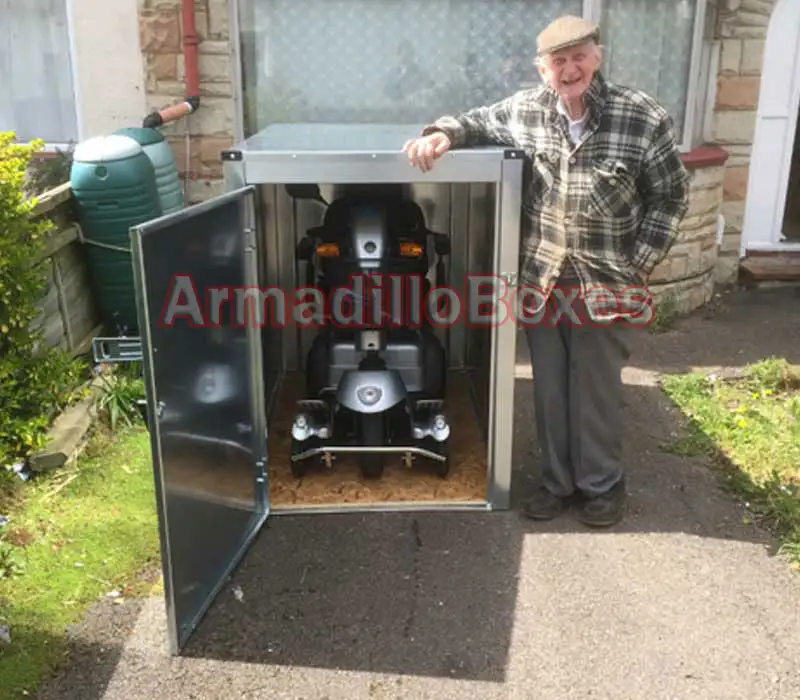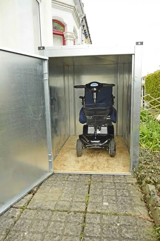 Fabricated in Dorset by timed served craftsmen from 1.2mm Galvanised steel (more information on galvanised) others use 0.5mm and 0.7mm manufacturers are not telling you this just saying plastic coated and are over twice the price this is one of the strongest boxes on the market so rigid it does not need special foundations,(please see wooden floor page for details) it can even be sat on a gravel drive (see photo). 0.5 / 0.7mm ones need a perfectly level base pre-laid if not they deform under their own weight.